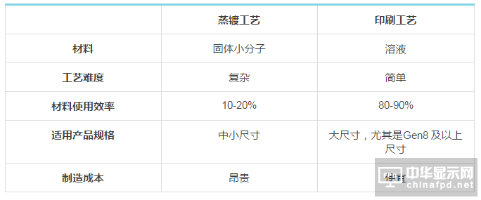 印刷工藝相對(duì)于蒸鍍工藝有以下優(yōu)勢: