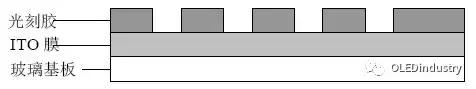 接下來,要在沉積了ITO薄膜的玻璃上涂上光刻膠,在ITO玻璃上形成一層均勻的光阻層。然后烘烤一段時間,將光刻膠的溶劑部分揮發,增加光阻材料與ITO玻璃的粘合度。