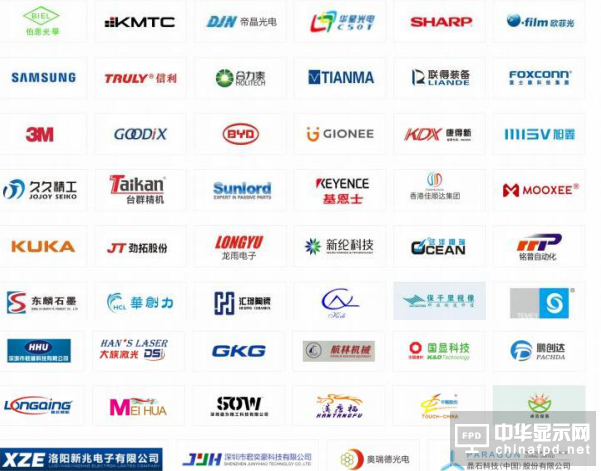 夏普、JDI、京東方、天馬微、友達光電、龍騰光電、TPK、歐菲光、信利、伯恩、汕頭超聲、藍思、蕪湖長信、合力泰、帝晶、聯創、業際、萊寶高科、同興達、中光電、TCL顯示、立德、顯創、創維顯示、星星科技、比亞迪、正達光電、貴州星瑞安、旭榮電子、華清光電、瑞必達、智誠光學、熒茂科技、深越、維達力等