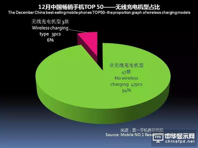 12月中國暢銷手機TOP 50中,采用無線充電的機型有3款,占比6%,就是iPhone X、iPhone8 Plus和三星 Galaxy S8+。