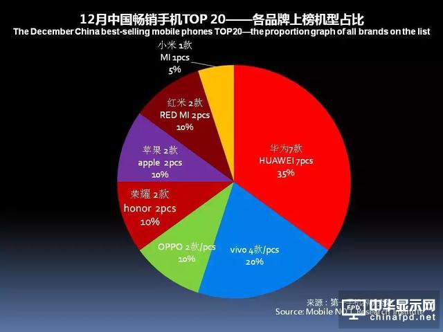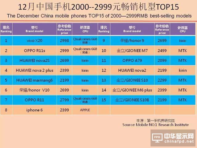 12月中國手機品牌銷量TOP 20值得注意的地方是,身陷資金短缺旋渦的金立,在市場上的表現還沒有出現異常反應。