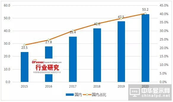 2015-2020年國內偏光片市場規模趨勢及占比情況