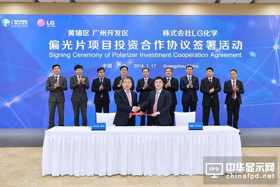 1月17日,黃埔區、廣州開發區與株式會社LG化學簽訂投資合作協議,后者擬投資約3億美元,在廣州科學城建設大型制造工廠,生產大尺寸偏光片及封裝材料等產品,預計2019年建成投產,達產產值約20億元。這是廣州首個大型偏光片生產項目,將助力廣州打造“世界級平板顯示基地”,并輻射帶動華南地區平板顯示產業。LG化學是韓國LG集團的核心組成企業,也是全球最大的大尺寸偏光片企業。