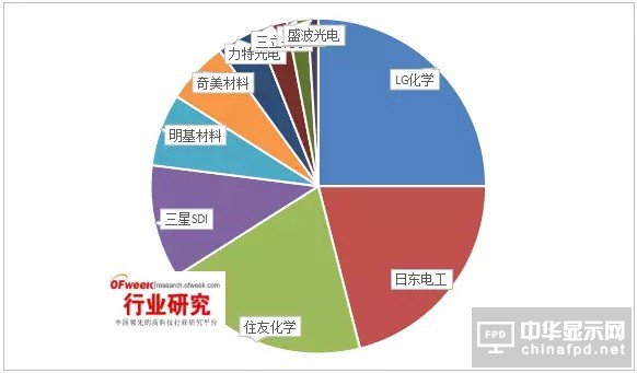 由于偏光片技術門檻較高,導致市場集中度也非常高,目前主要被LG化學、住友化學、日東電工、三星SDI等幾大廠商壟斷。但隨著新興市場持續的技術積累,日韓廠商的市場占有率有所降低,國產化趨勢明顯。