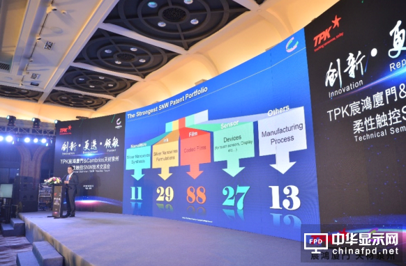 Cambrios早在2004年開始,便開始進行納米銀線的研發及專利申請,涵蓋了納米銀線的制程、墨水合成、膜以及觸控裝置。2018年10月25日,Cambrios與TPK一起在中國深圳舉辦了SNW技術交流會,會議上展示了可折疊及大尺寸的SNW觸控產品,提供完整的SNW垂直整合解決方案,并展示了范圍完整,覆蓋廣泛的納米銀專利布局。