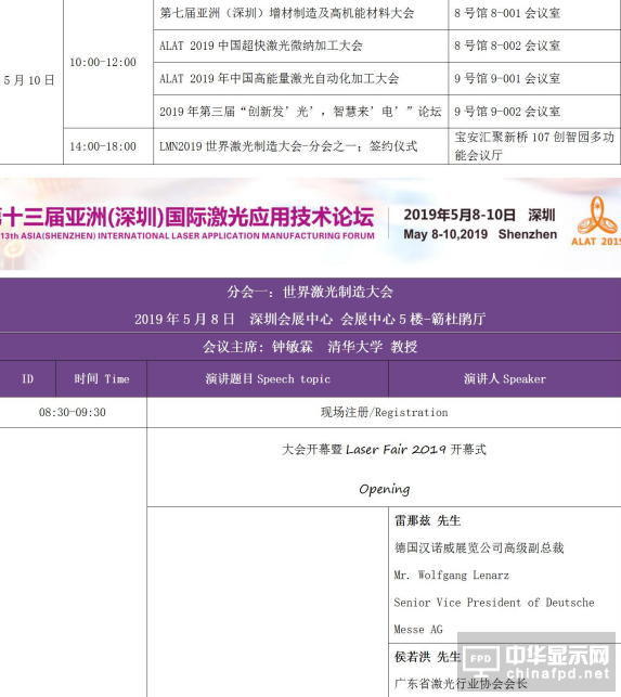 由中國激光產(chǎn)業(yè)社團聯(lián)盟、廣東省激光行業(yè)協(xié)會、廣東省光學學會主辦,漢諾威米蘭星之球展覽(深圳)有限公司、《激光制造商情》、江門市智能激光技術研究院承辦的“ALAT 2019第十三屆亞洲(深圳)國際激光應用技術論壇”( 以下簡稱“國際激光論壇”)將于5月8日至10日在深圳會展中心舉行,國家院士、眾多專家、企業(yè)高層、國內社團組織負責人、美國、日本、歐洲各地光電協(xié)會/聯(lián)盟領導人、深圳市相關部門領導將出席會議并參觀指導。