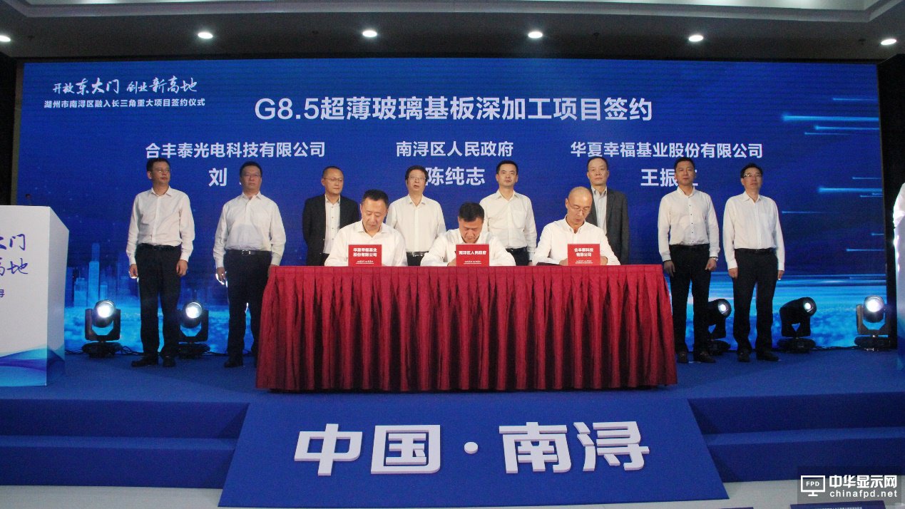 9月6日,在以“開放東大門、創業新高地”為主題的浙江省湖州市南潯區融入長三角重大項目簽約儀式上,南潯區人民政府、華夏幸福基業股份有限公司(以下簡稱華夏幸福)與深圳市合豐泰光電科技有限公司(以下簡稱合豐泰)共同簽署了投資160億的超薄玻璃基板深加工項目(一期)。