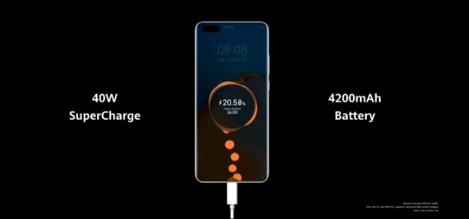 發布會上,余承東表示華為P40支持華為私有協議的40W有線充電,能夠更快充滿電池,讓手機充電的速度進一步提升。