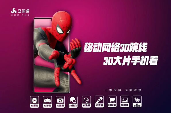 依托裸視三維顯示技術,用戶外貼立體通裸視三維智慧膜,結合3D APP,可享受實時更新的3D觀影、3D拍攝、3D直播、3D游戲、3D社交等三維全場景互動,讓每個人都能裸眼享受真實震撼的3D視覺盛宴。