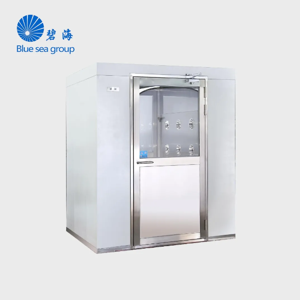 風淋室(AIR SHOWER)是一種通用性較強的局部凈化設備,安裝于潔凈室與非潔凈室之間。當人要進入潔凈區時需經風淋室吹淋,其吹出的潔凈空氣可去除人所攜帶的塵埃,能有效的減少和阻斷塵源進入潔凈區。風淋室的前后兩道門為電子互鎖,又可起到氣閘的作用,阻止未凈化的空氣進入潔凈區域。