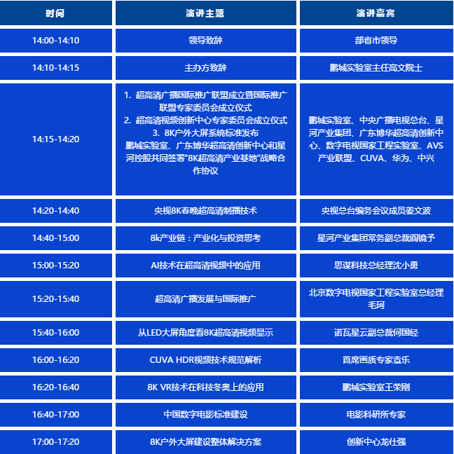 8K超高清視頻技術專業論壇是由鵬城實驗室、廣東博華超高清創新中心、深圳龍崗智能視聽研究院、中關村視聽產業技術創新聯盟(AVS產業聯盟)主辦,由中國超高清視頻產業聯盟、深圳超高清視頻產業聯盟、深圳思謀信息科技有限公司、西安諾瓦星云科技股份有限公司共同協辦。