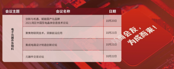 電子元器件板塊活動(dòng)安排(具體會(huì)議安排以展會(huì)現(xiàn)場(chǎng)公布為準(zhǔn))