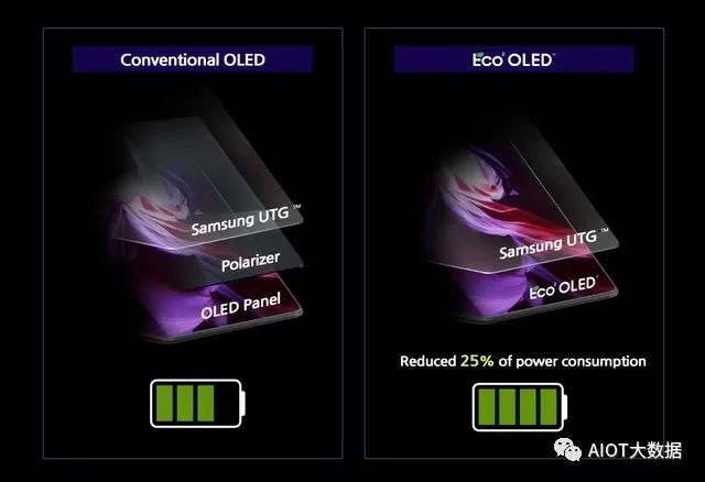 圖片來源(global.samsungdisplay.com)三星顯示研發(fā)的“Eco2 OLED™”技術(shù)采用疊層結(jié)構(gòu)代替?zhèn)鹘y(tǒng)核心材料偏光片,將OLED面板的透光率提升33%,功耗降低25%,首次應(yīng)用于三星旗下折疊屏智能手機(jī)Galaxy Z Fold3。由于該技術(shù)去除偏光片,被視為環(huán)境友好型技術(shù)。Eco2 OLED 技術(shù)首次應(yīng)用于去年8月份發(fā)布的三星 Galaxy Z Fold3 上的可折疊顯示屏,它也對(duì) UPC(屏下攝像頭)的應(yīng)用做出了貢獻(xiàn)。三星顯示表示,隨著顯示屏透光率的提升,它能為面板內(nèi)的攝像頭模塊提供更多的光線,從而確保了基于 UPC 技術(shù)的應(yīng)用。