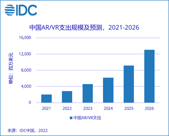 IT之家了解到,IDC 預測,2021年中國AR / VR市場IT相關支出規(guī)模約為21.3億美元,并將在2026年增至130.8億美元,為全球第二大單一國家市場。