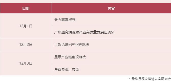廣州超高清視頻產業高質量發展座談會+OLED主旨論壇+全球OLED產業高端訪談+OLED產業鏈及應用論壇+OLED之夜主題晚宴+顯示產業鏈創投峰會+OLED產業創新評選+OLED顯示新產品、新技術精品展區+考察參觀