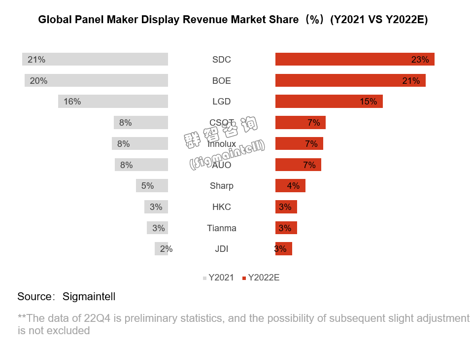 競爭篇:2022年全球面板企業呈現不同程度虧損 ,三星/京東方競爭力持續增強