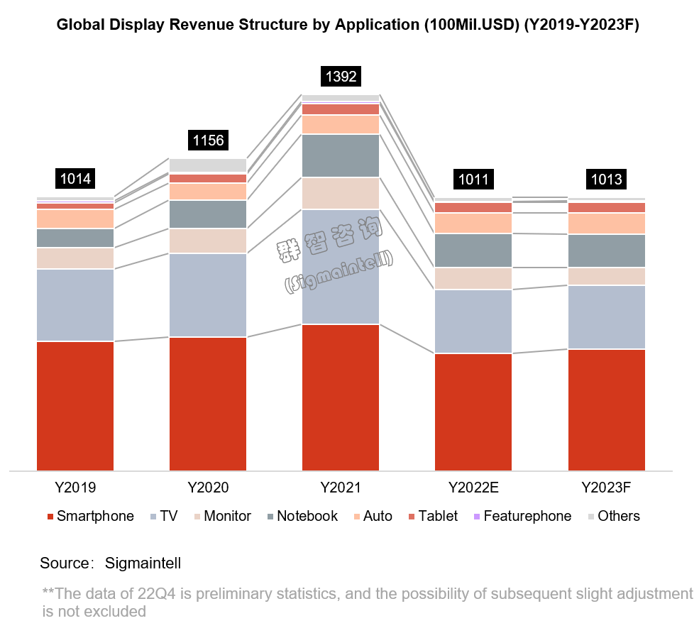 產品篇:2022年各大主流應用營收呈現20%以上衰退,大尺寸有望在23年率先修復性恢復