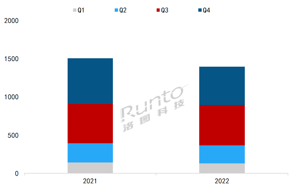 分季度表現來看,上半年下滑6.7%,第三季度市場回暖;第四季度進入新冠感染高峰期,封城、臨時停業等行為導致市場銷售活動受到影響,當季出貨50.1萬臺,下滑幅度最大,達-16.4%。