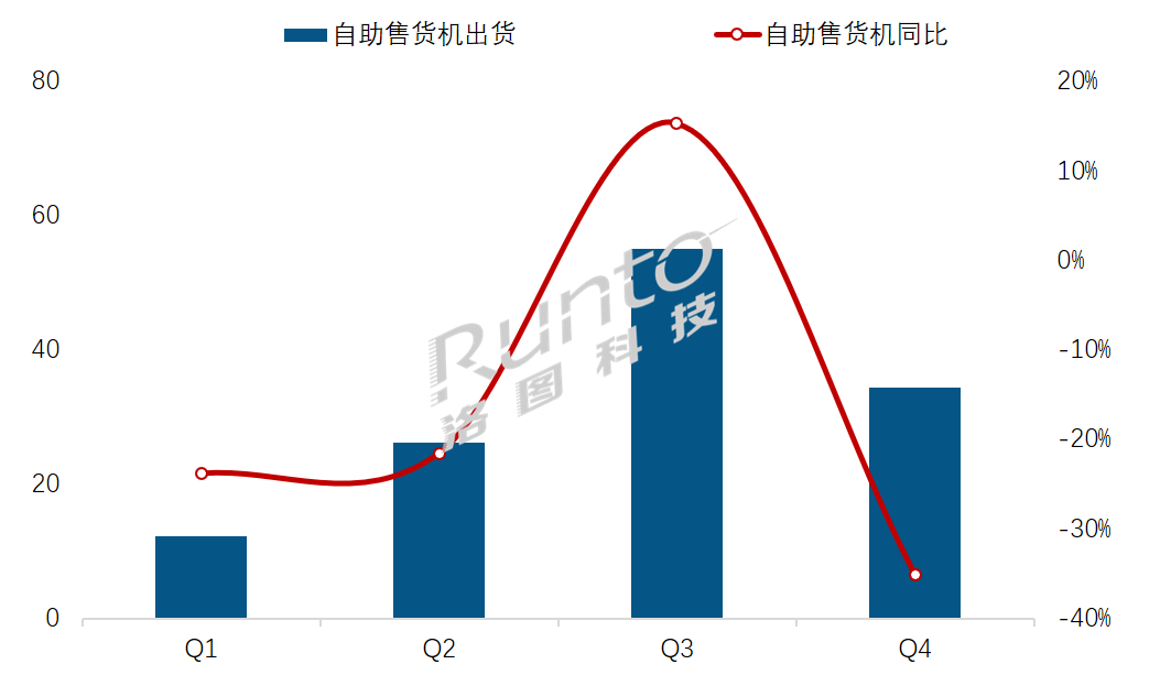 2022年,自助收銀機出貨量32.7萬臺,與2021年同比增長4.1%,僅在第四季度的市場表現有所下滑。