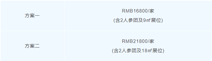 (4)每家參團企業限定最多申請兩個9㎡展位,超出所選參團方案包含的展位面積的需加收展位費用;如企業確有需要申請2個以上9㎡展位的,參展參團方案費用另計。