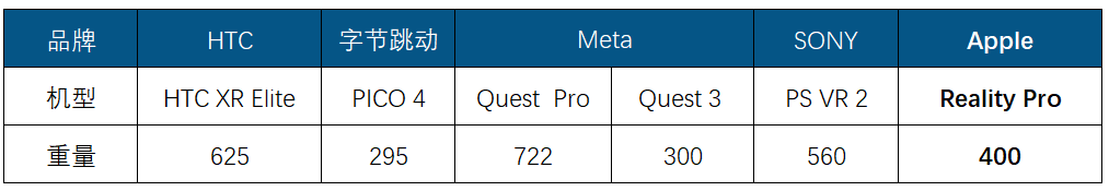 典型XR機(jī)型重量比較