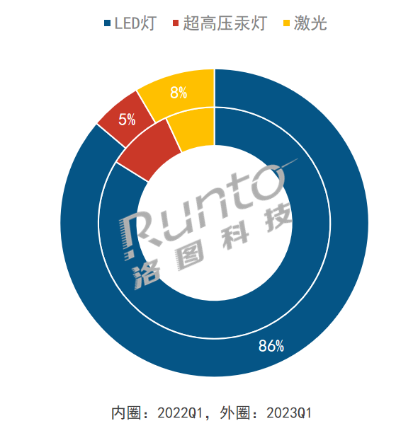 2023年一季度,LED燈市場份額達到86%,較去年同期上漲2.3個百分點,但出貨量同比仍然下滑5%。