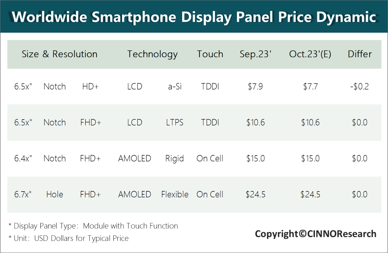 CINNO Research預(yù)測,10月和11月LTPS/柔性AMOLED低價產(chǎn)品仍將小幅漲價,a-Si低價產(chǎn)品亦存在漲價可能。