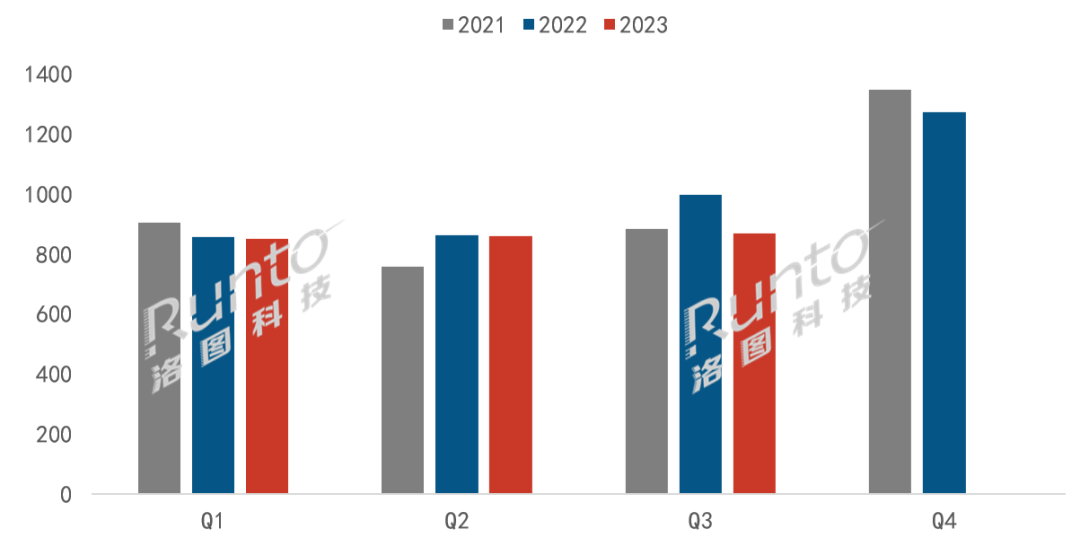 根據洛圖科技(RUNTO)最新發布的《中國電視市場品牌出貨月度追蹤(China TV Market Brand Shipment Monthly Tracker)》數據顯示,2023年第三季度,中國電視市場品牌整機出貨量達到869萬臺,環比第二季度微增1.2%,較2022年同期下降12.9%。截至第三季度,年度累計出貨總量2580萬臺,同比下降5.1%。