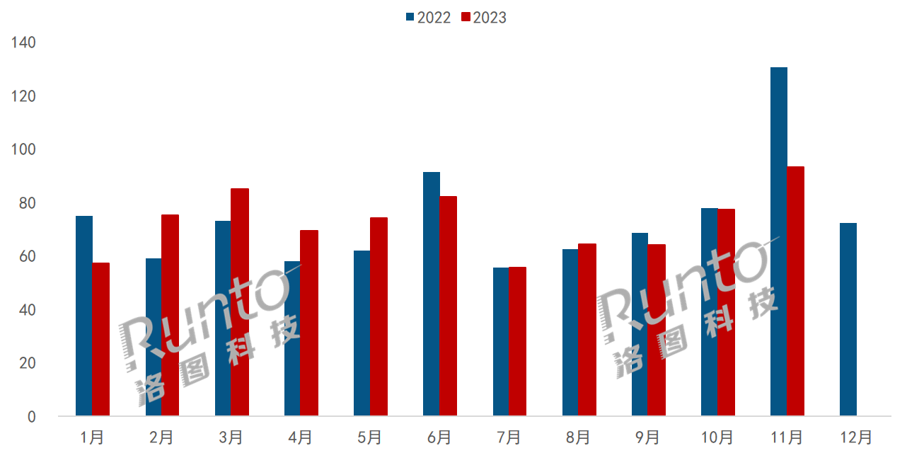 數據來源:洛圖科技(RUNTO)線上監測數據,單位:萬臺
