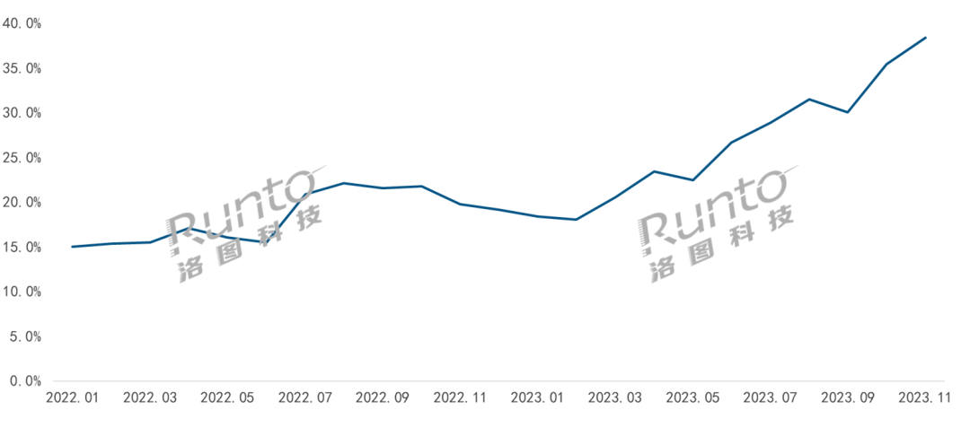 數據來源:洛圖科技(RUNTO)線上監測數據,單位:%