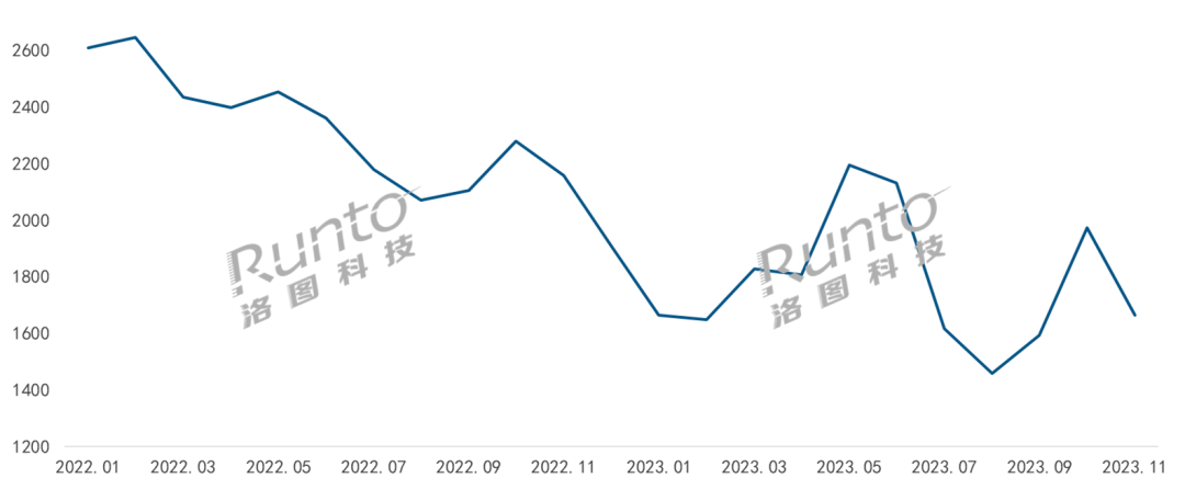 一方面,人臉識別智能鎖具有識別速度較快、安全性高、可靠性強、唯一性等優勢,受到消費者認可;另一方面,原材料成本快速下降,其中3D結構光的模組成本降幅接近50%。成本下降和市場競爭共同推動了人臉識別智能鎖均價深度下探。根據洛圖科技(RUNTO)線上監測數據顯示,人臉識別智能鎖的均價從2022年1月的2610元降至了2023年11月的1664元。此外,1500元以下的市場實現了高速增長,銷量同比上漲超260%;千元以下的人臉識別鎖已占據產品暢銷榜的重要位置。