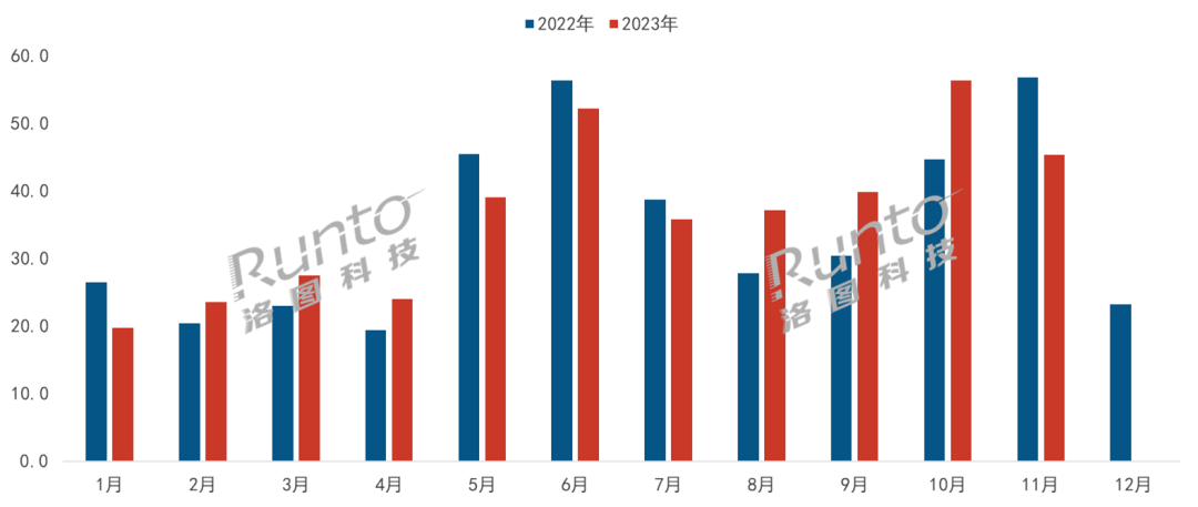 2022-2023年 中國智能門鎖線上市場分月度銷量走勢