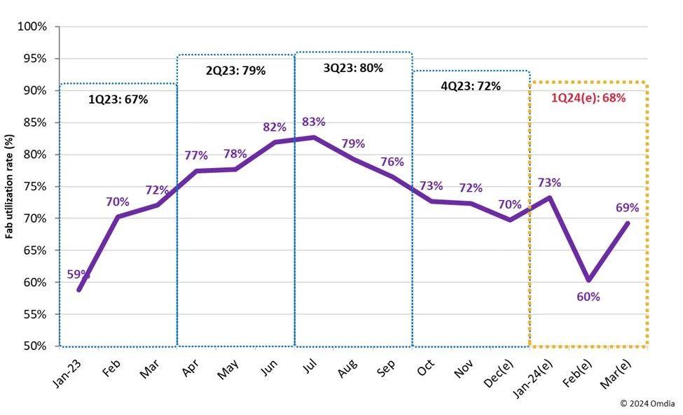 研究機(jī)構(gòu)Omdia最新報(bào)告顯示,由于2024年年初終端需求放緩,以及面板制造商為保護(hù)價(jià)格而進(jìn)行減產(chǎn),預(yù)計(jì)2024年Q1顯示面板工廠的總體產(chǎn)能利用率將降至68%以下。