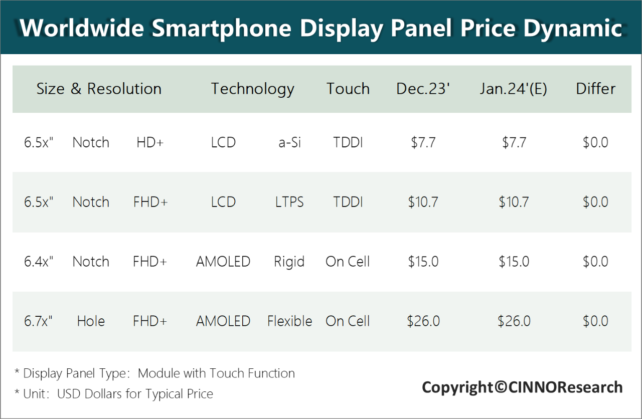 CINNO Research預測,1月隨著春節的臨近手機面板價格將持平,2月需要重點關注春節復工后需求的變化情況。
