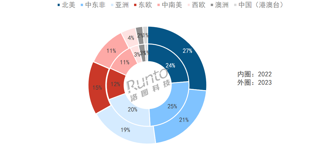 2023年 中國(guó)大陸液晶電視出口市場(chǎng)區(qū)域結(jié)構(gòu)及變化