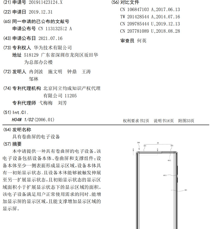 據天眼查顯示,近日華為技術有限公司獲得了“折疊機構、卷曲屏結構及電子設備”專利授權。