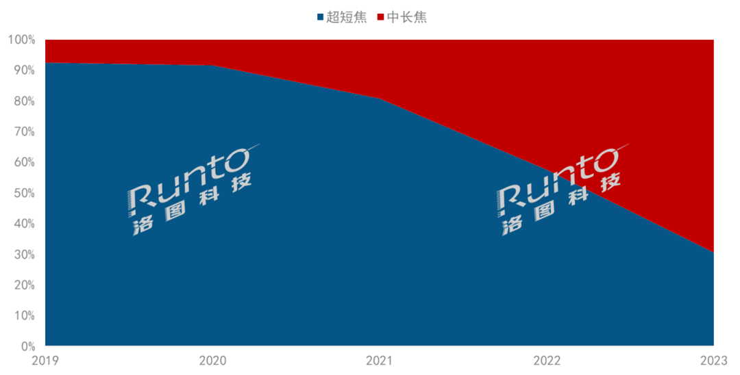 中長(zhǎng)焦和超短焦市占比反轉(zhuǎn)