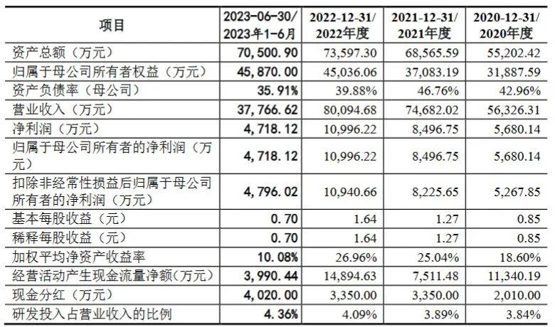 財(cái)務(wù)方面,晶訊光電于2020年、2021年、2022年以及2023年1-6月?tīng)I(yíng)業(yè)收入分別約為5.63億元、7.47億元、8.01億元、3.78億元,同期,凈利潤(rùn)分別約為5680.14萬(wàn)元、8496.75萬(wàn)元、1.10億元、4718.12萬(wàn)元。