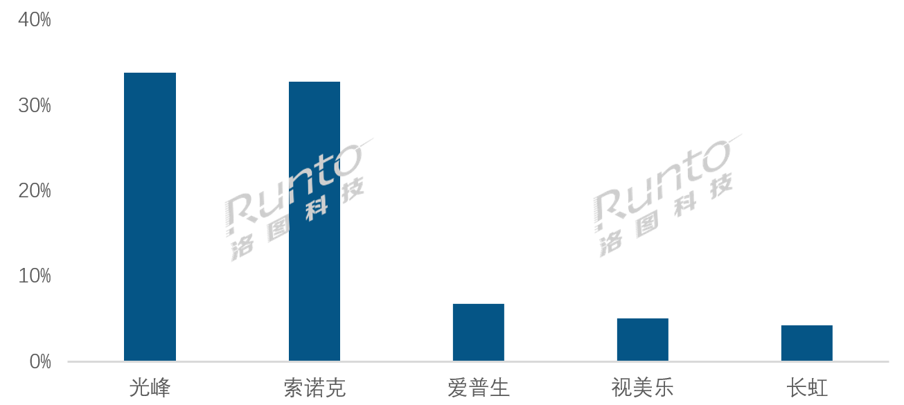 品牌格局方面,國內品牌光峰、索諾克深挖高職教需求,憑借國產化優勢以及政策支持,繼續領跑行業,合計份額提升了8個百分點,達到66.5%。