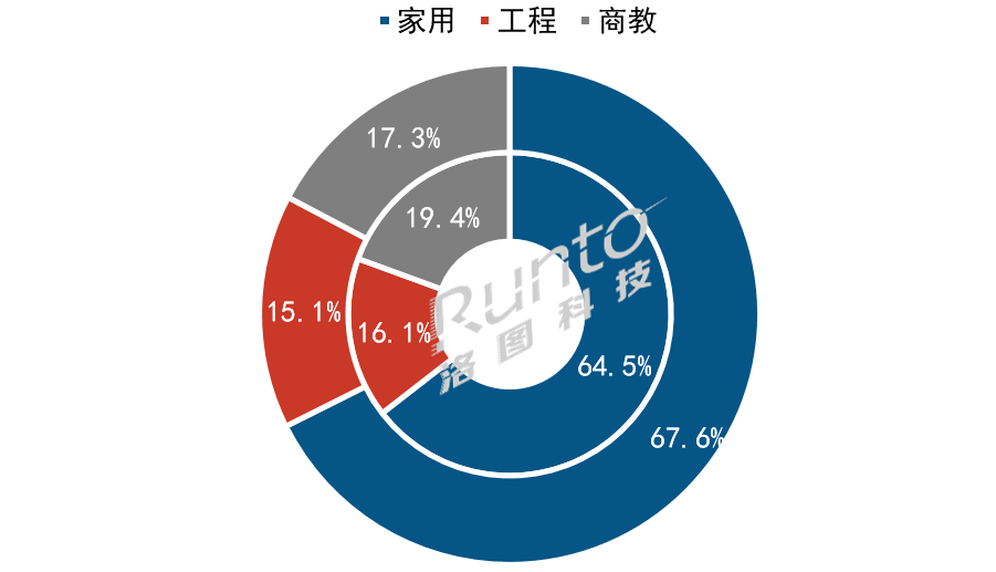 工程市場在文旅相關項目的帶動下市場已回歸正軌,盡管其在整體市場的份額有所下滑,但出貨量同比上漲了21.4%。
