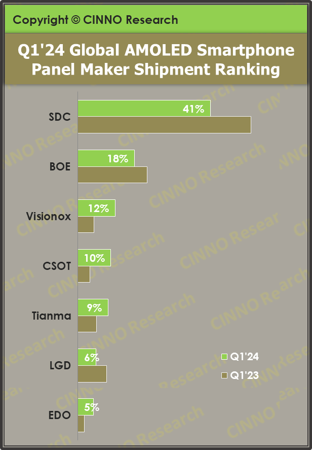 三星顯示:同比增長11.1%,市場份額縮窄至41.0%,對蘋果和三星手機的依賴度越來越深,其他國產(chǎn)安卓品牌訂單持續(xù)轉(zhuǎn)出;
