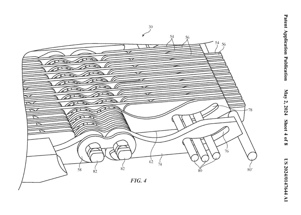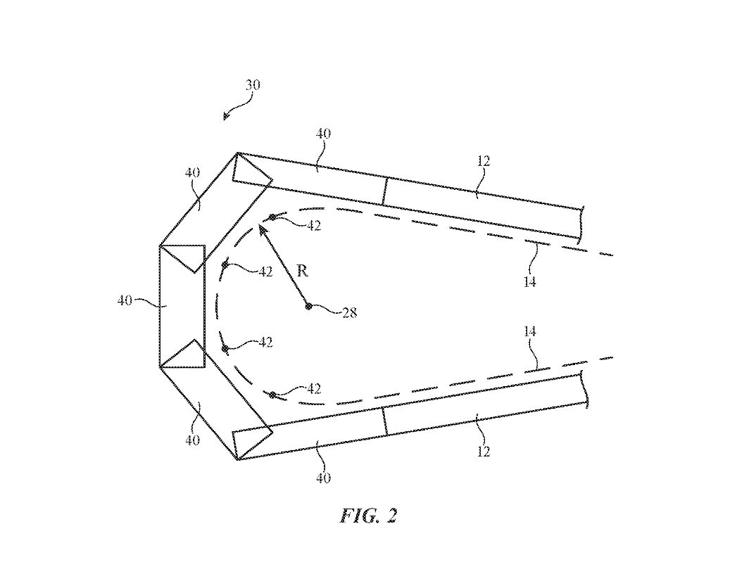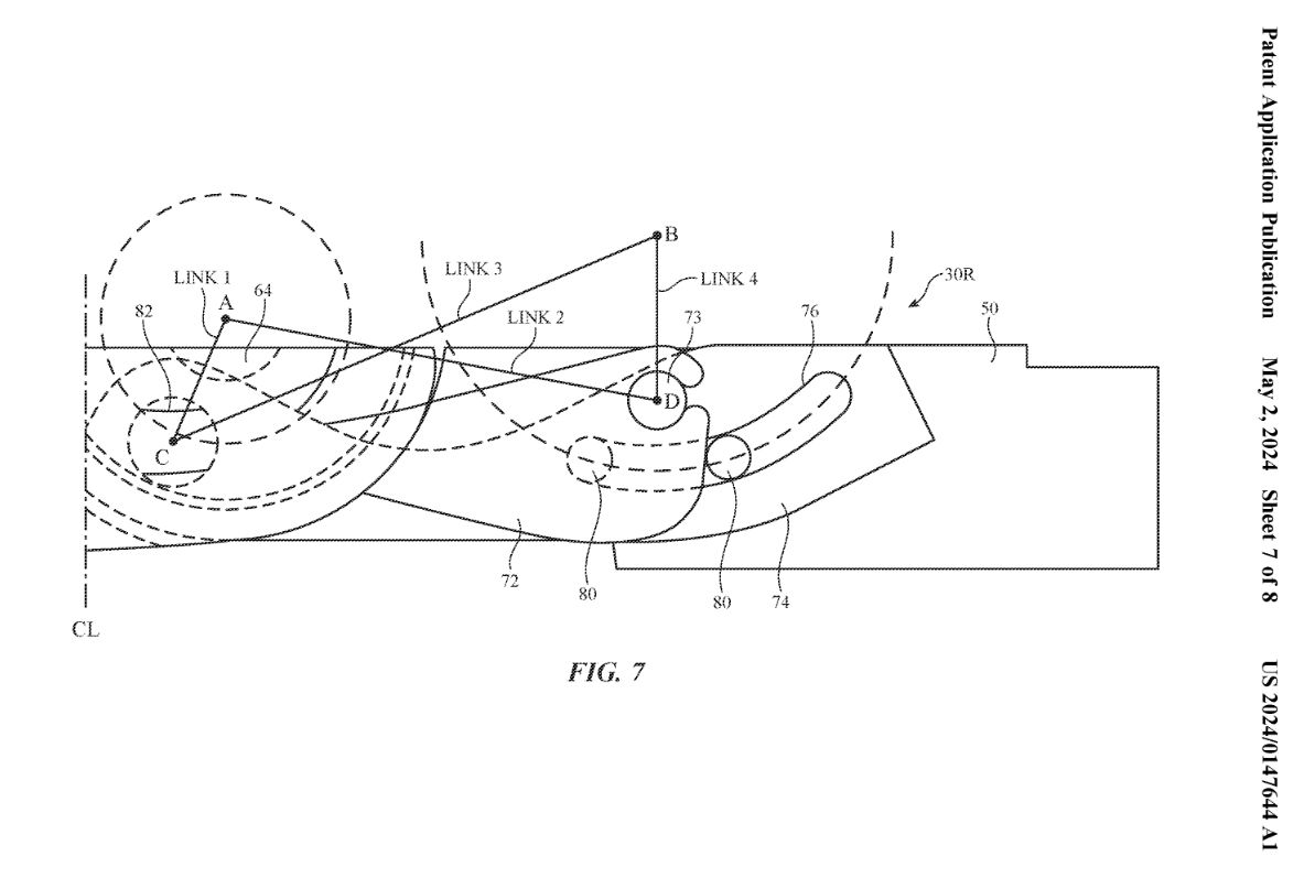圖 2 中使用多個 #40 鉸鏈連接,然后彼此耦合以旋轉運動,讓外殼#12 的第一部分和第二部分之間串聯延伸,不過專利圖來看相鄰鉸鏈連桿的整體旋轉量可能會受到限制。