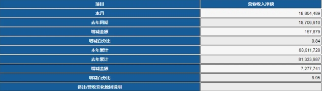 公司2024年累計營收為41.22億新臺幣(折合人民幣月9.23億元),同比減少15.36%。