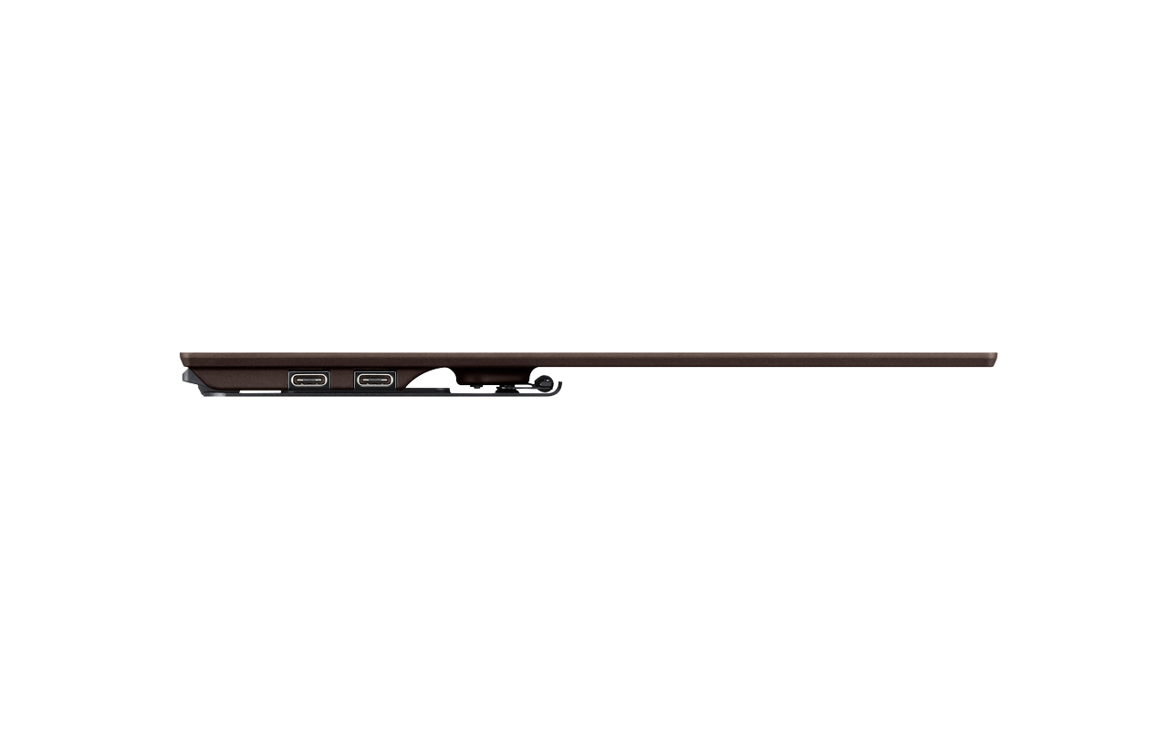 這款顯示器最大的特征便是“輕薄”—— 重量只有 325g,外觀最薄部分僅有 3.9mm。但該產品又擁有較強剛性,機身由熱塑性三維模塑碳材料制成,實現了高強度和輕量化。