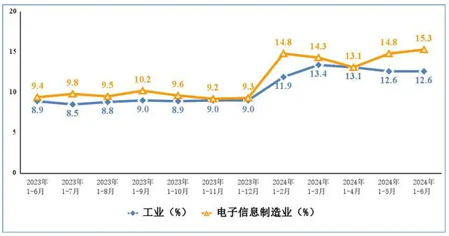 上半年,電子信息制造業固定資產投資同比增長15.3%,較1—5月份提高0.5個百分點,比同期工業、高技術制造業投資增速分別高2.7個和5.2百分點。
