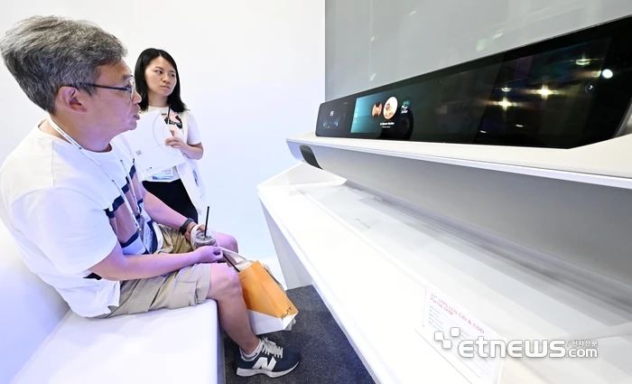 一位參觀者正在觀看使用 LG Display 低溫多晶硅 (LTPS) LCD 的車輛顯示屏。圖源:etnews