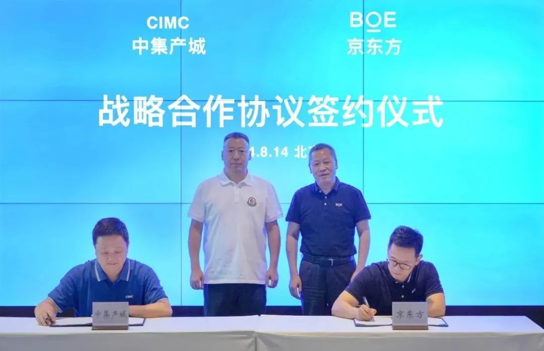 8月14日,京東方董事長陳炎順和中集產城總裁禹振飛出席簽約儀式并見證協議簽署。