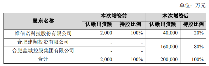 公告進一步指出,各方同意根據(jù)項目建設需求分期同比例實繳,后續(xù)資本金由項目公司按法律規(guī)定和項目需求籌集到位。維信諾放棄部分優(yōu)先認繳出資權利,首期增資事項完成后,合肥國顯將不再納入維信諾合并報表范圍內(nèi)。