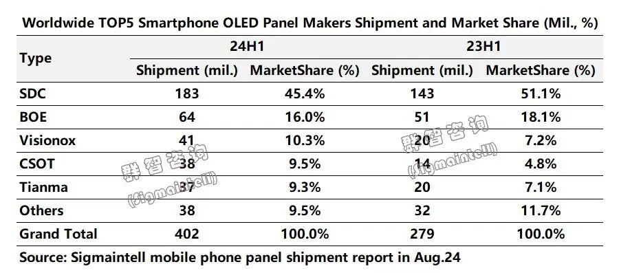 三星顯示仍為最大OLED供應(yīng)商,但市場份額下降,國內(nèi)京東方、維信諾、TCL華星和天馬等廠家奮力追趕,虧損情況有所改善。