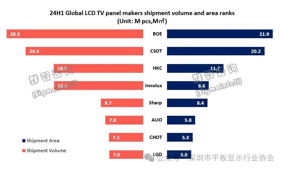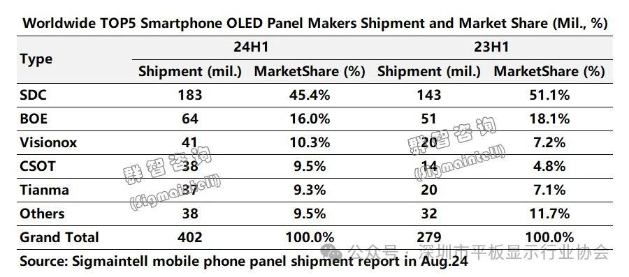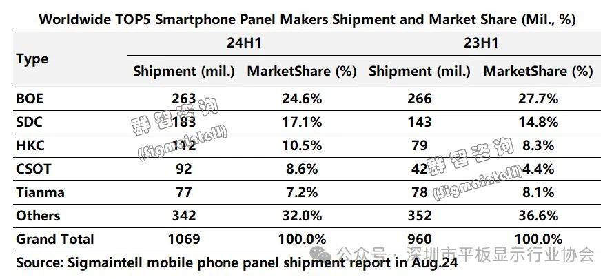 京東方(BOE)、三星顯示(SDC)仍然引領(lǐng)市場、惠科(HKC)位居出貨第三。